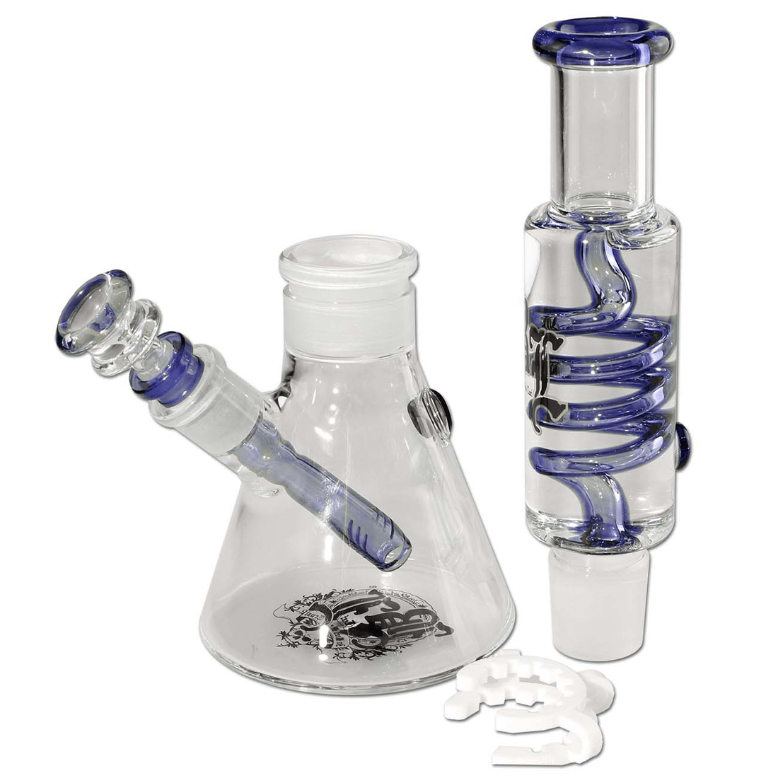 Acest bong minunat de la Black Leaf® este format din două părți. Partea superioară, tubul de tracțiune cu traiectoria spirală extinsă a fumului, conține un lichid de răcire. Dacă puneți partea cu lichid la frigider pentru un scurt timp înainte de sesiunea la bong, vă puteți bucura de un fum răcit și fără zgârieturi. Cele două părți ale bongului sunt conectate absolut ferm cu clema inclusă.