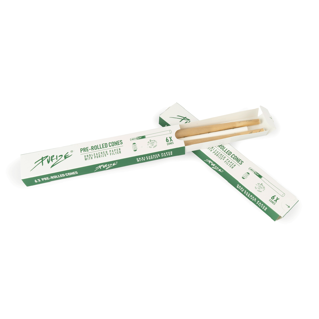 Conuri Pre-Rulate PURIZE® King Size Slim cu 6 hârtii per pachet, vegane și organice.