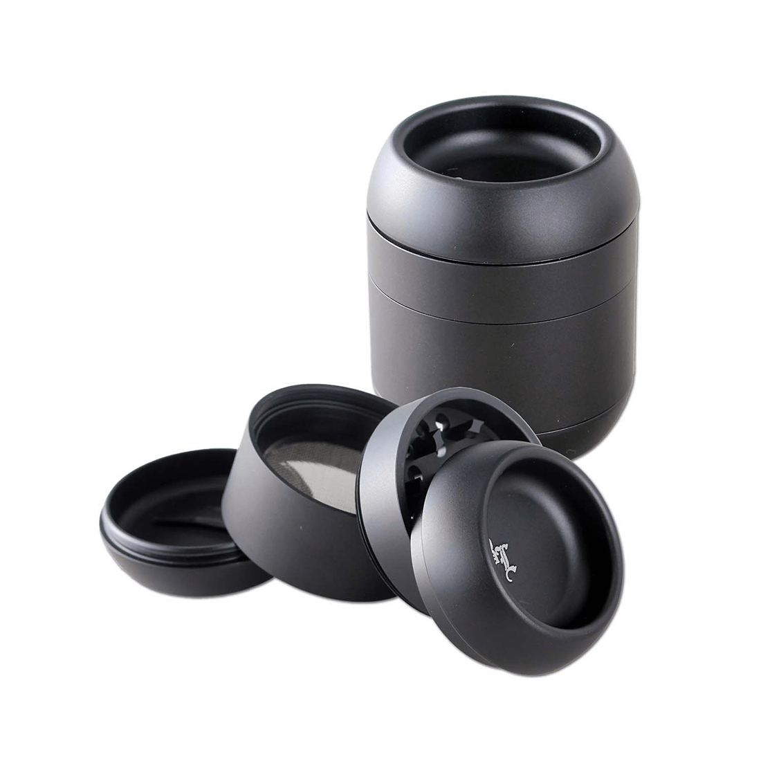 Un inel de nailon asigură că aceast grinder din aluminiu funcționează fără probleme și previne abraziunea, în timp ce este ținut împreună de un magnet puternic.