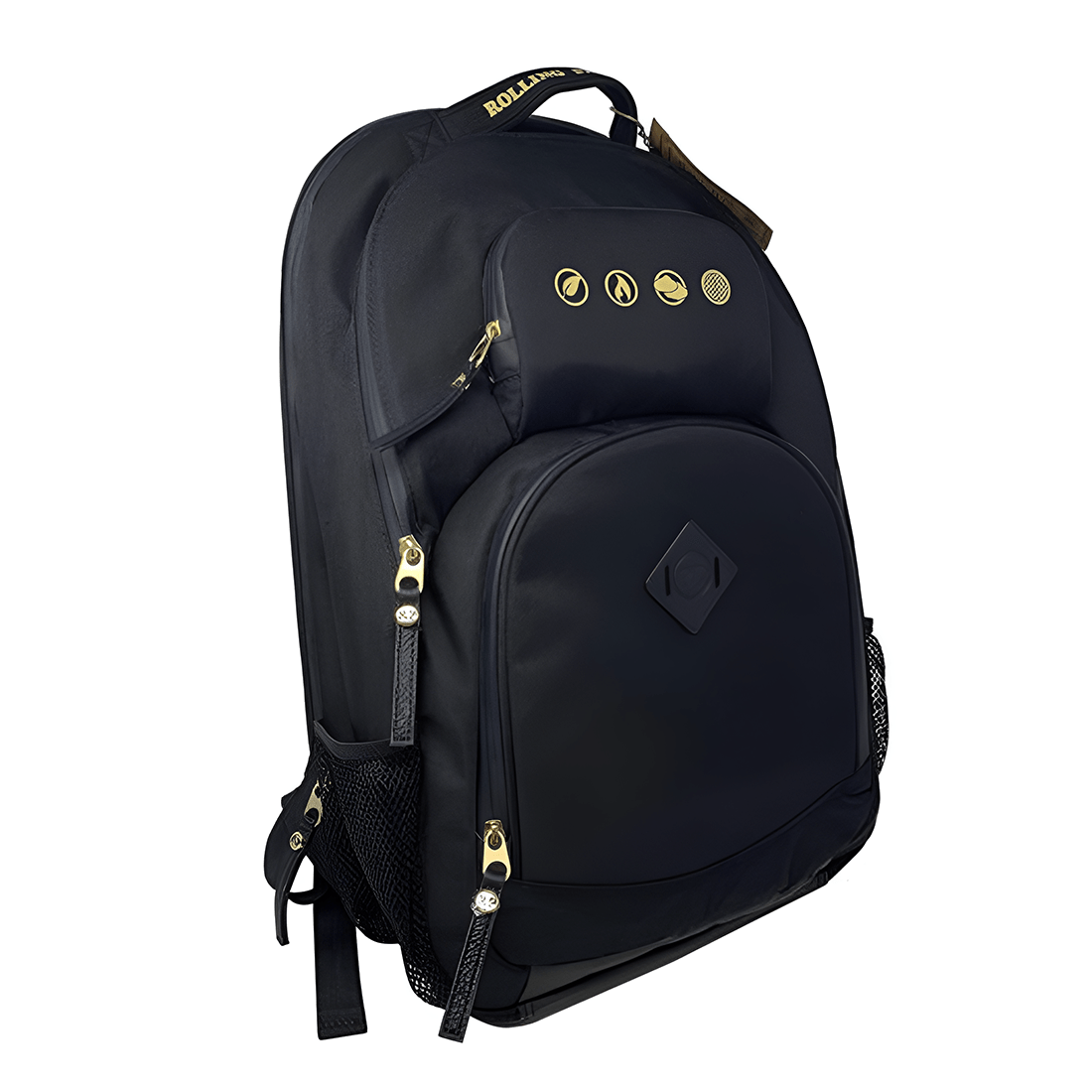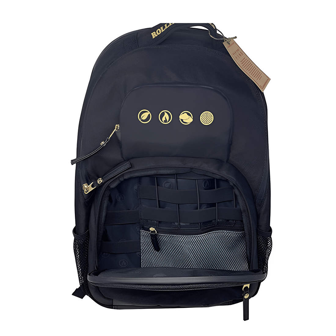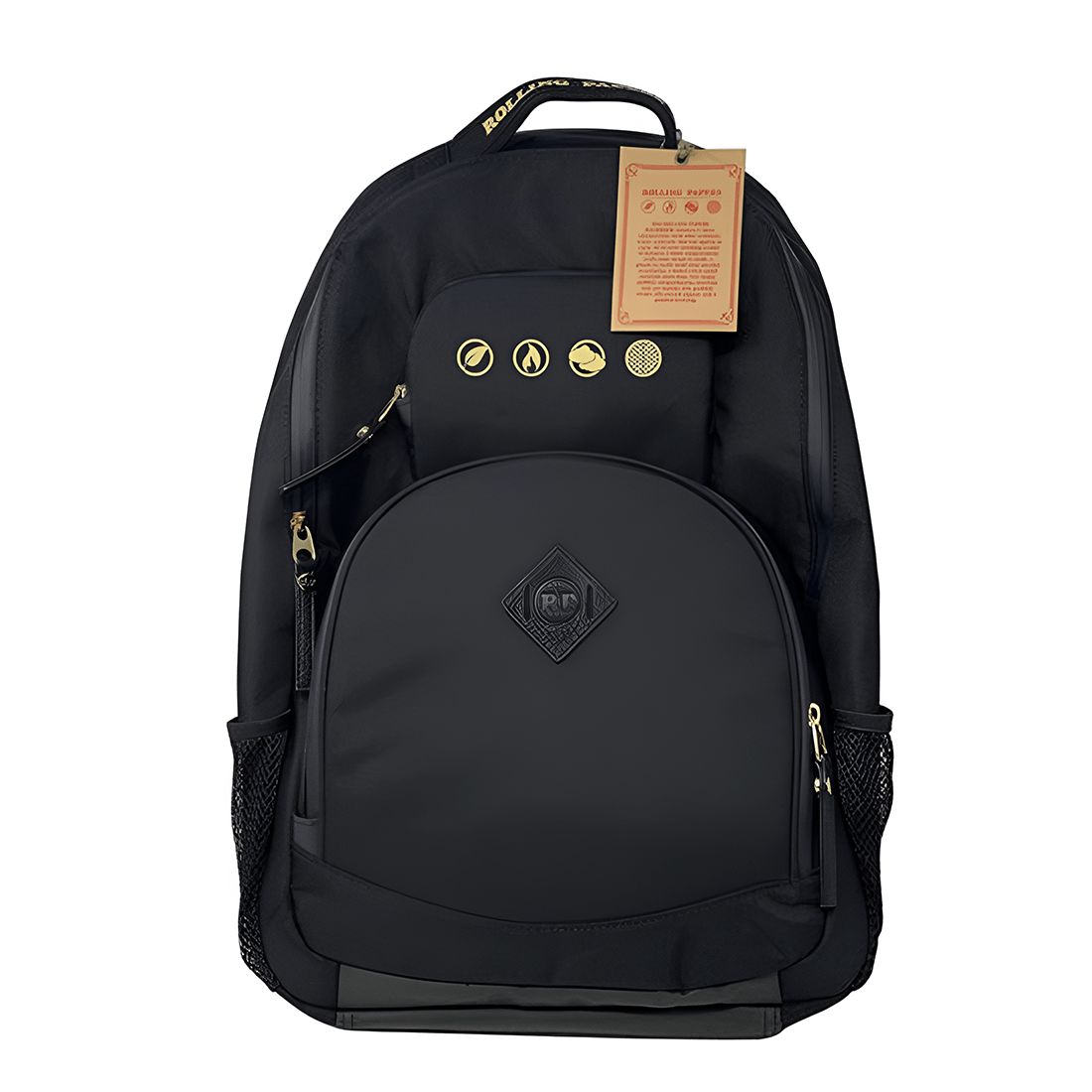 Există suporturi externe, un buzunar frontal cu bretele încrucișate și un buzunar mai mic cu fermoar, un alt buzunar anti-miros acoperit suplimentar și un buzunar interior mare pentru laptop, bong etc.