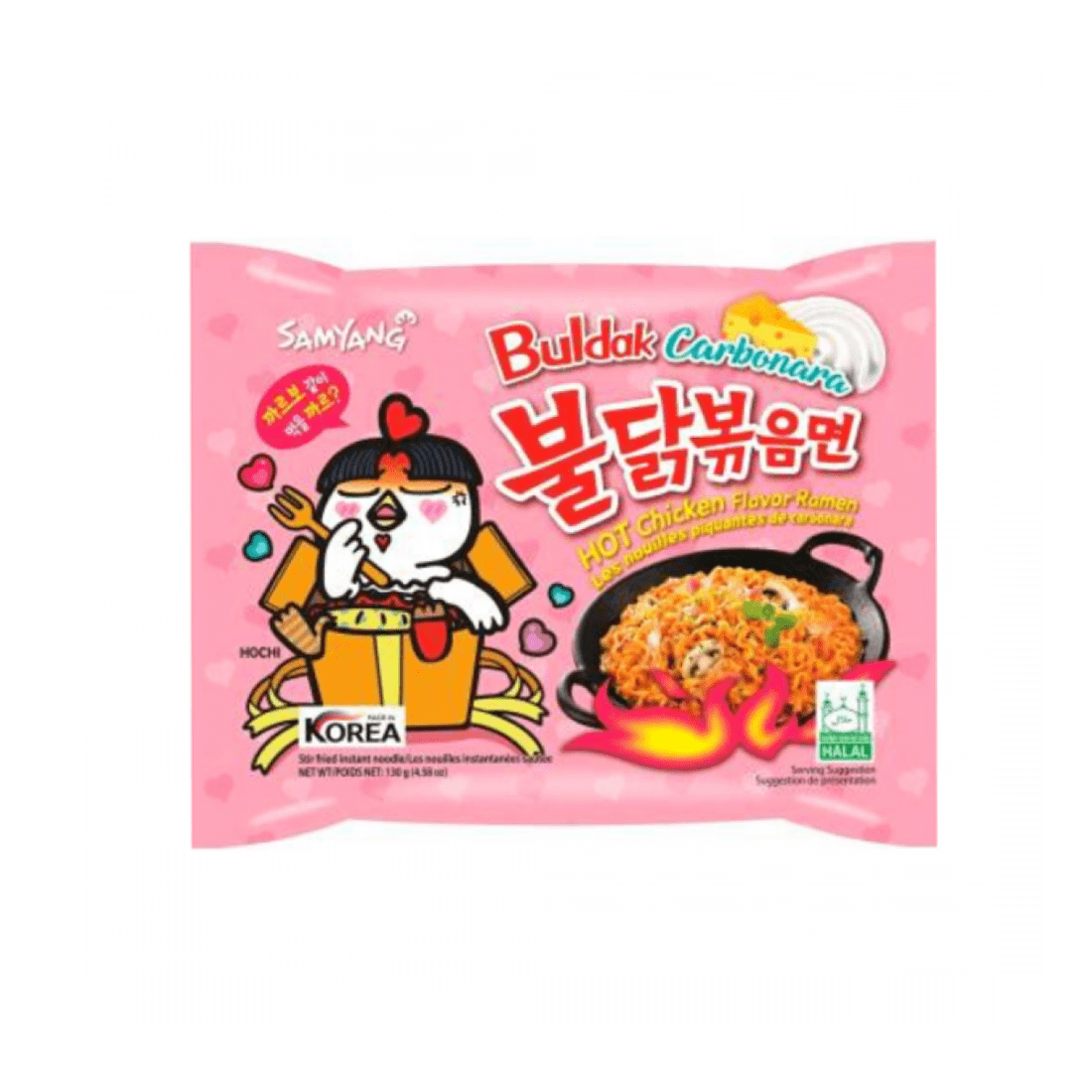 Ceea ce distinge acest fel de mâncare remarcabil este unicitatea sa - este Halal! Bucurați-vă de aromele autentice ale Samyang Buldak Chicken Carbonara fără nicio grijă cu privire la restricțiile alimentare. Acest produs a fost realizat cu atenție pentru a îndeplini cerințele certificării Halal, asigurând că toată lumea se poate răsfăța cu aromele sale încântătoare.