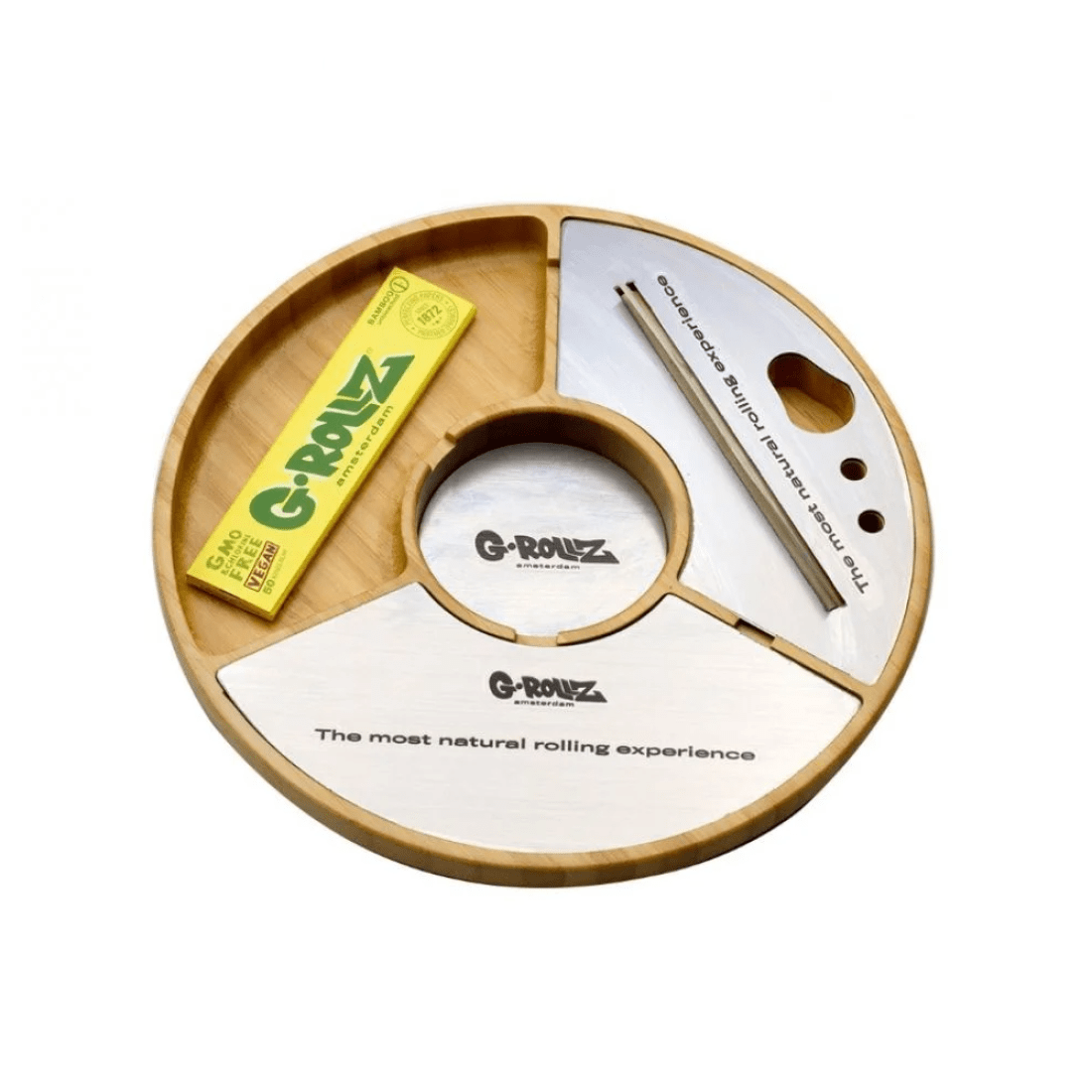 Fiecare tava din bambus vine cu hârtie de rulat din bambus G-Rollz 1 1/4.